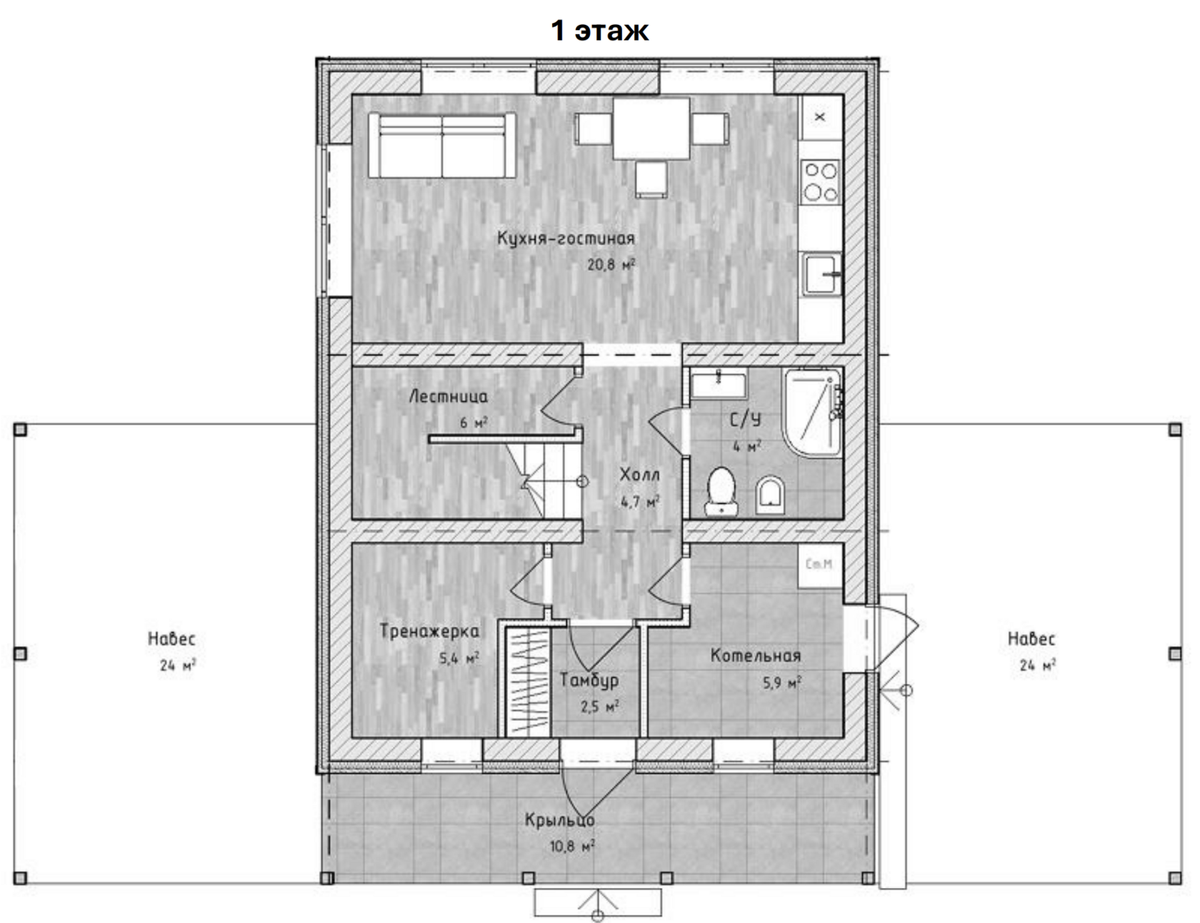 - Крыльцо — 10,8 м²